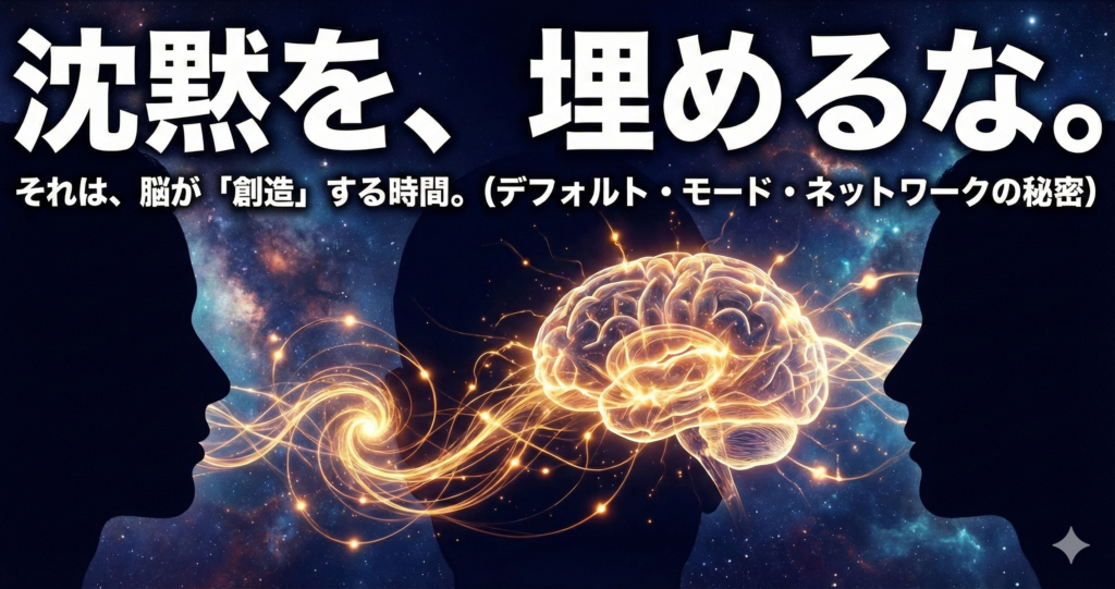 沈黙の最中、脳のデフォルト・モード・ネットワーク(DMN)は活性化し、過去の記憶や感情、未来の予測が結びついていく。